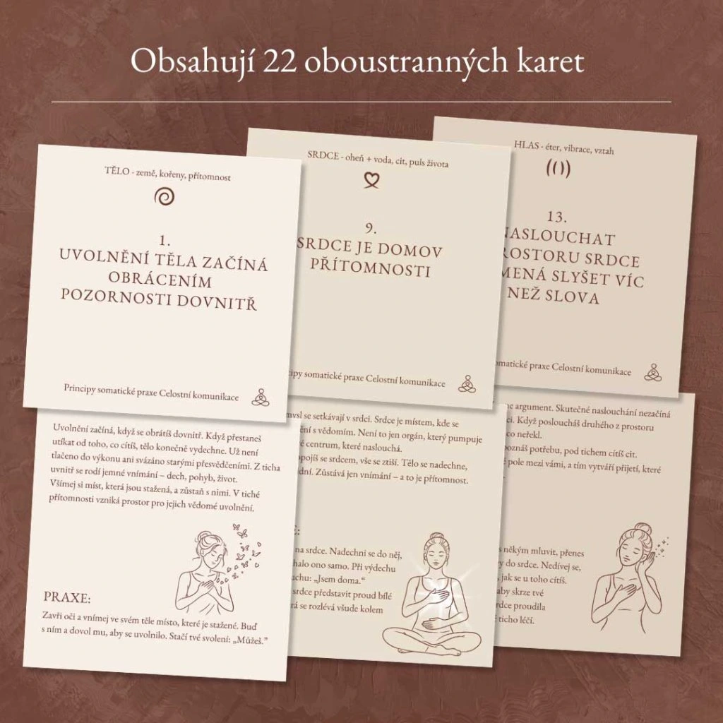 - 22 somatických karet s jednoduchými tělesnými cvičeními