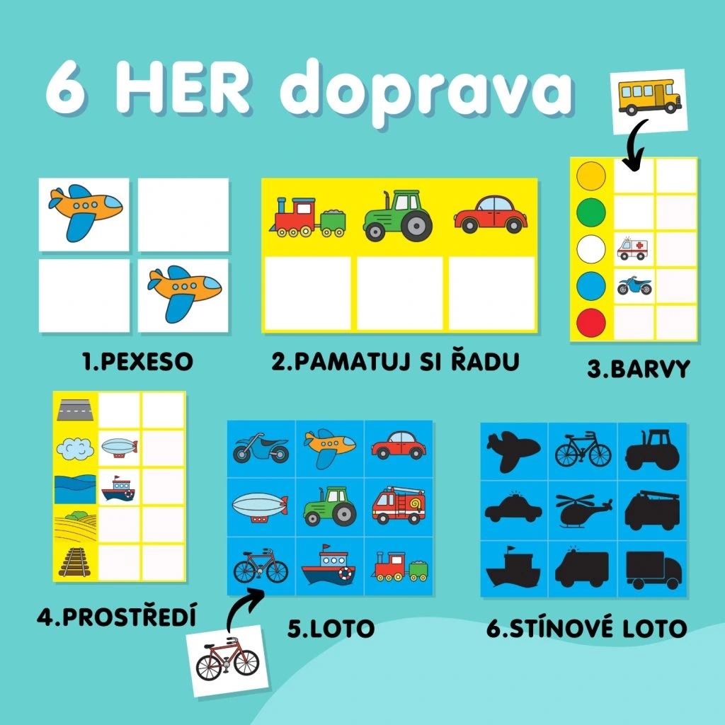 Dopravní prostředky - set 6 her - PDF
